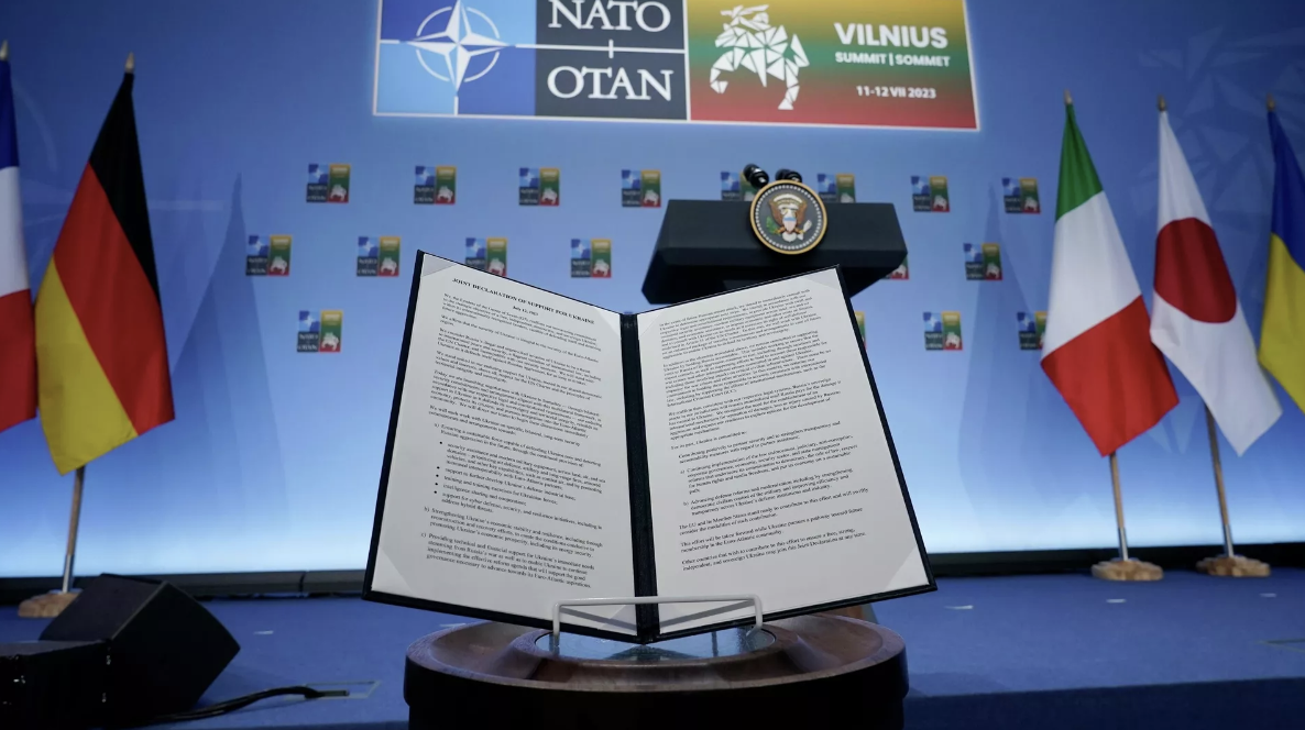 Овако би требало убудуће да изгледају формулације о савезу који је извршио агресију на Србију, уколико би српски званичници одједном доживели катарзу, схватили да је и за њих најбоље да држава нестане и почели да примењују одлуке са прошлонедељног Самита НАТО у Виљнусу.