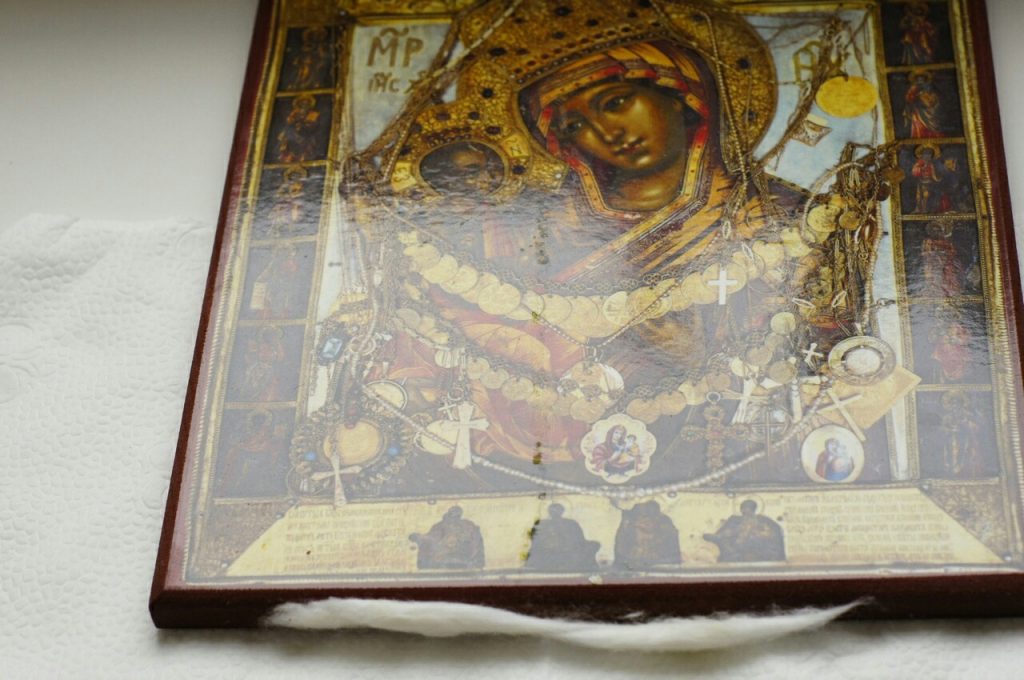 Икона која мироточи у дому Радмиле Шуговић у Београду.